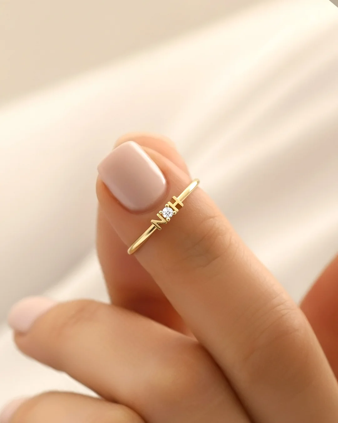 Harfli altın yüzük modelleri, tek başına kullanıldığında zarif bir duruş sergilerken, "yüzük istifleme" (ring stacking) modasıyla da harika bir uyum yakalar.
